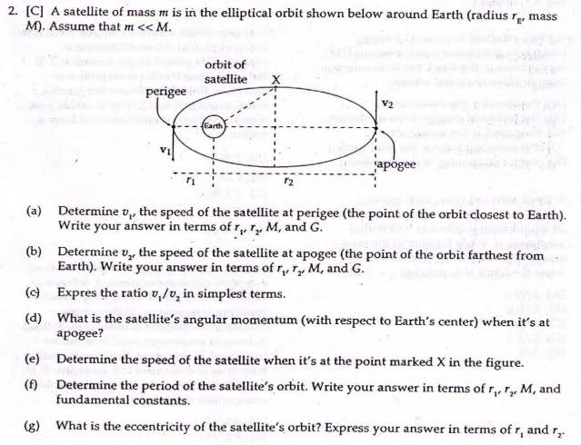 2 126 an earth satellite which moves in the elliptical equatorial orbit shown has a velocity v in space of 17 970 km h when it passes the end of the semi minor axis at a.